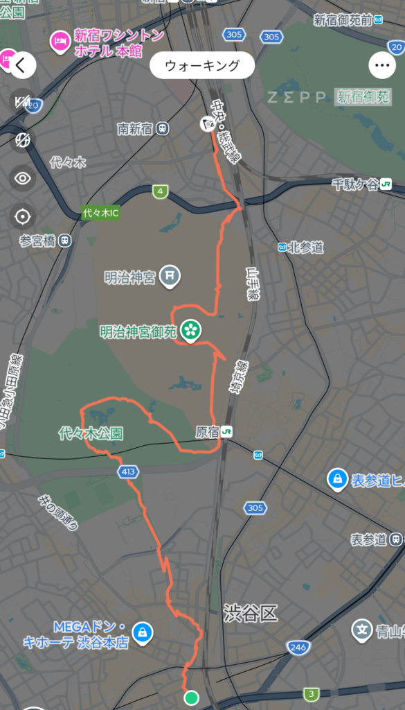 このコース、前回歩いた2024年11月のときは渋谷駅~渋谷駅の環状コースでした。
