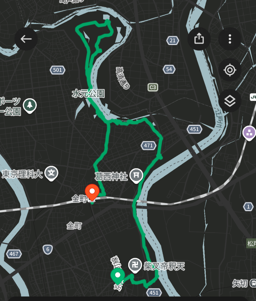 歩いたコースは柴又~金町のルートです。