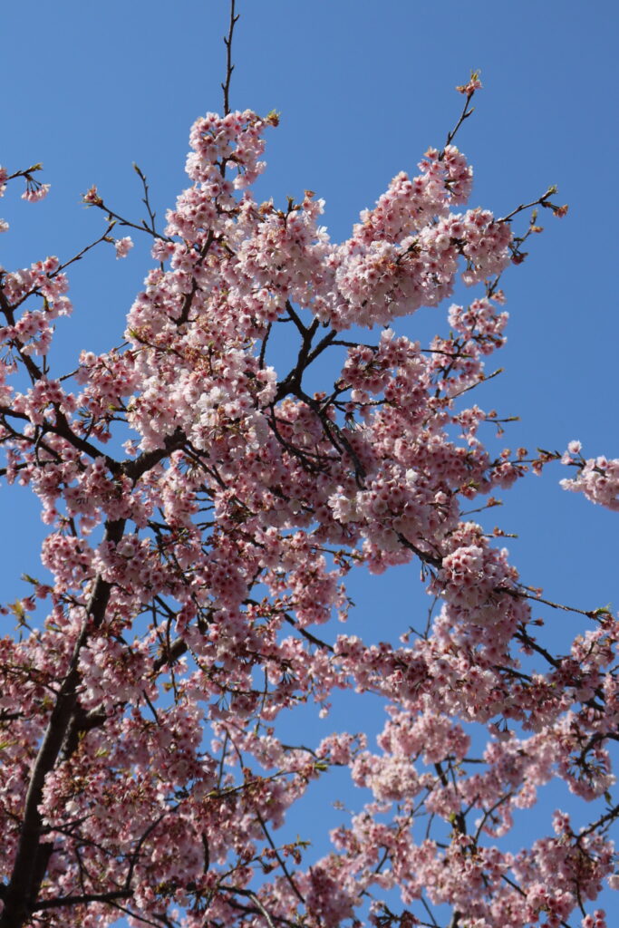 去年より早咲きと言ってますが、体感だとまだ二分にも満たない印象でした。
