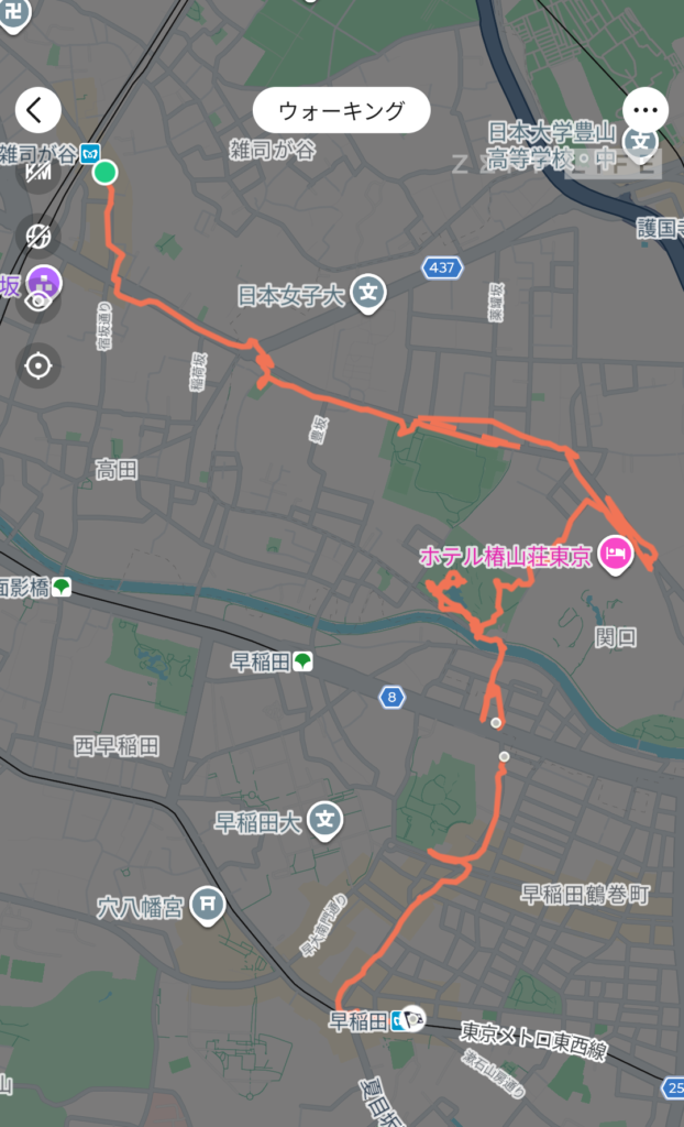 池袋から出発し、鬼子母神を経由して早稲田を目指して歩いて行きます。