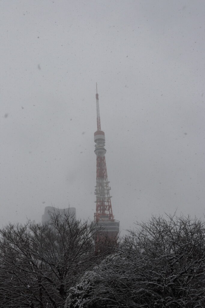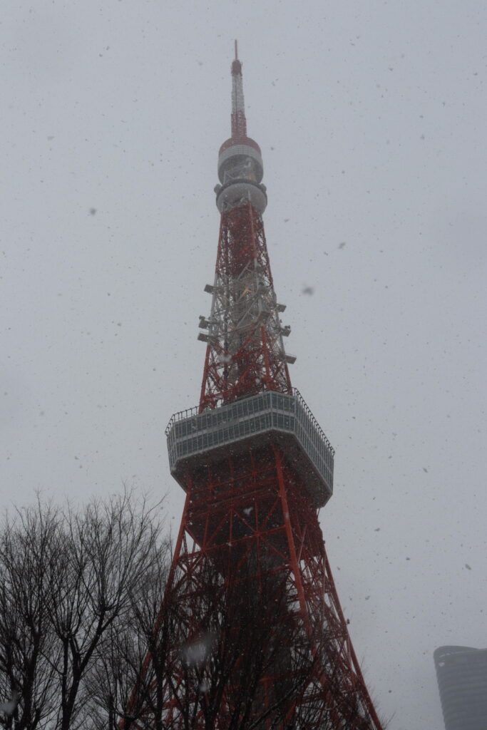 雪に煙る東京タワー