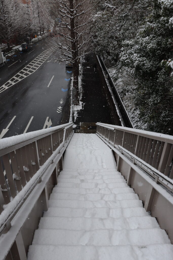 歩道橋にも雪がこんもりです
